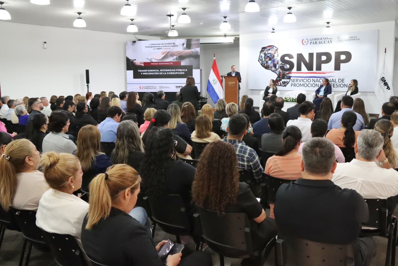 En la Sede Central del Servicio Nacional de Promoción Profesional (SNPP), se desarrolló el Primer Seminario de Integridad Pública, Transparencia y Prevención de la Corrupción, un evento institucional de gran relevancia que se enmarca en la Ley N.º 7.389/24, “Que establece el Régimen Nacional de Integridad, Transparencia y Prevención de la Corrupción de la República del Paraguay”.