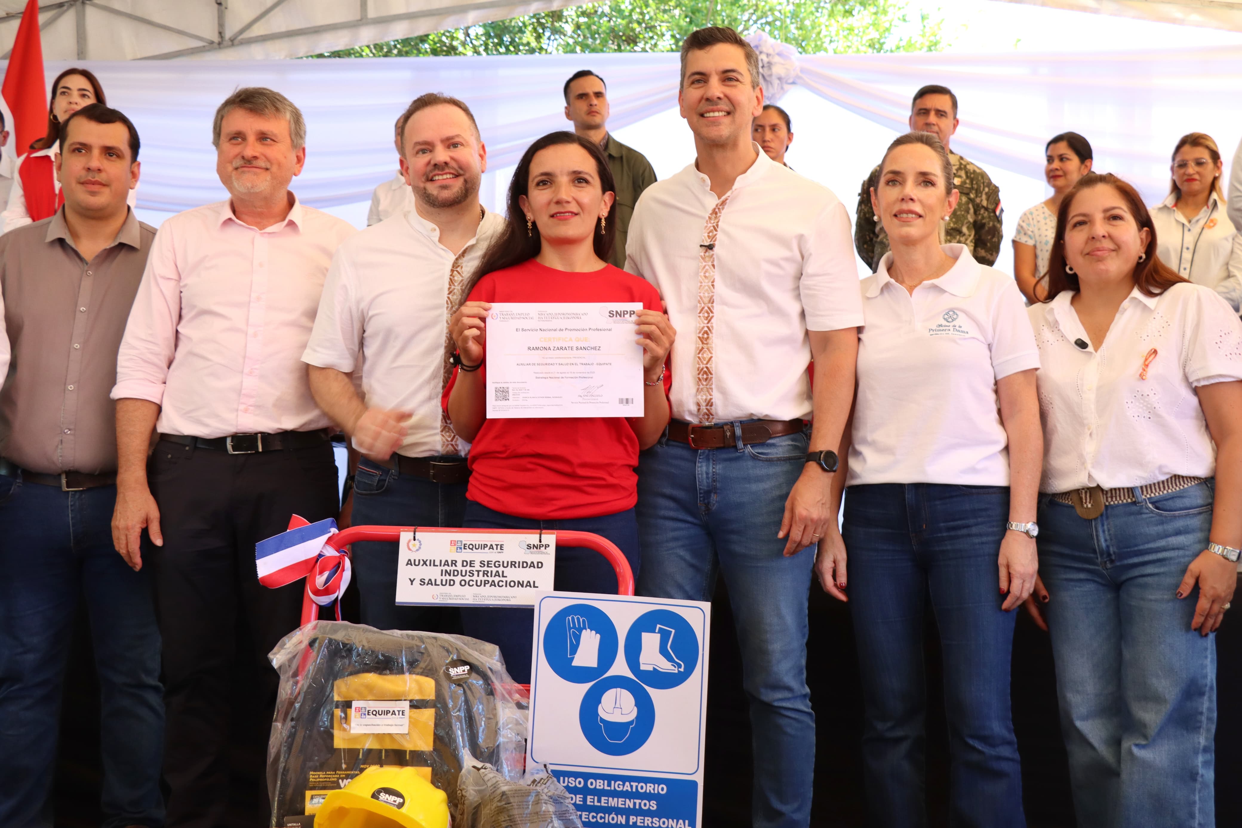 El evento contó con la presencia del Presidente de la Republica Santiago Peña, la Primera Dama de la Nación, Leticia Ocampos; el Director General del Servicio Nacional de Promoción Profesional (SNPP), José Cogliolo; así como otras autoridades nacionales y locales.