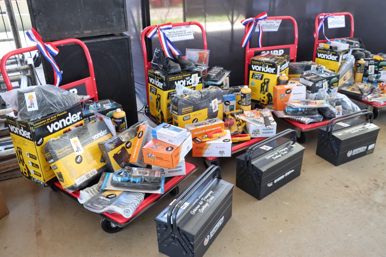Cabe destacar que fueron entregadas herramientas de trabajo a 8 (ocho) egresados del Programa EQUIPATE, (totalizando 20 beneficiarios en Guairá), correspondientes al curso de Instalación de A.A. tipo Split Monofásico, desarrollado en el distrito de José Fassardi. Esta iniciativa de política pública innovadora está orientada a facilitar la transición de los egresados de cursos de formación profesional hacia el mercado formal, mediante la provisión de equipos y herramientas que les permitan iniciar actividades productivas, potenciando así el empleo sostenible y digno.