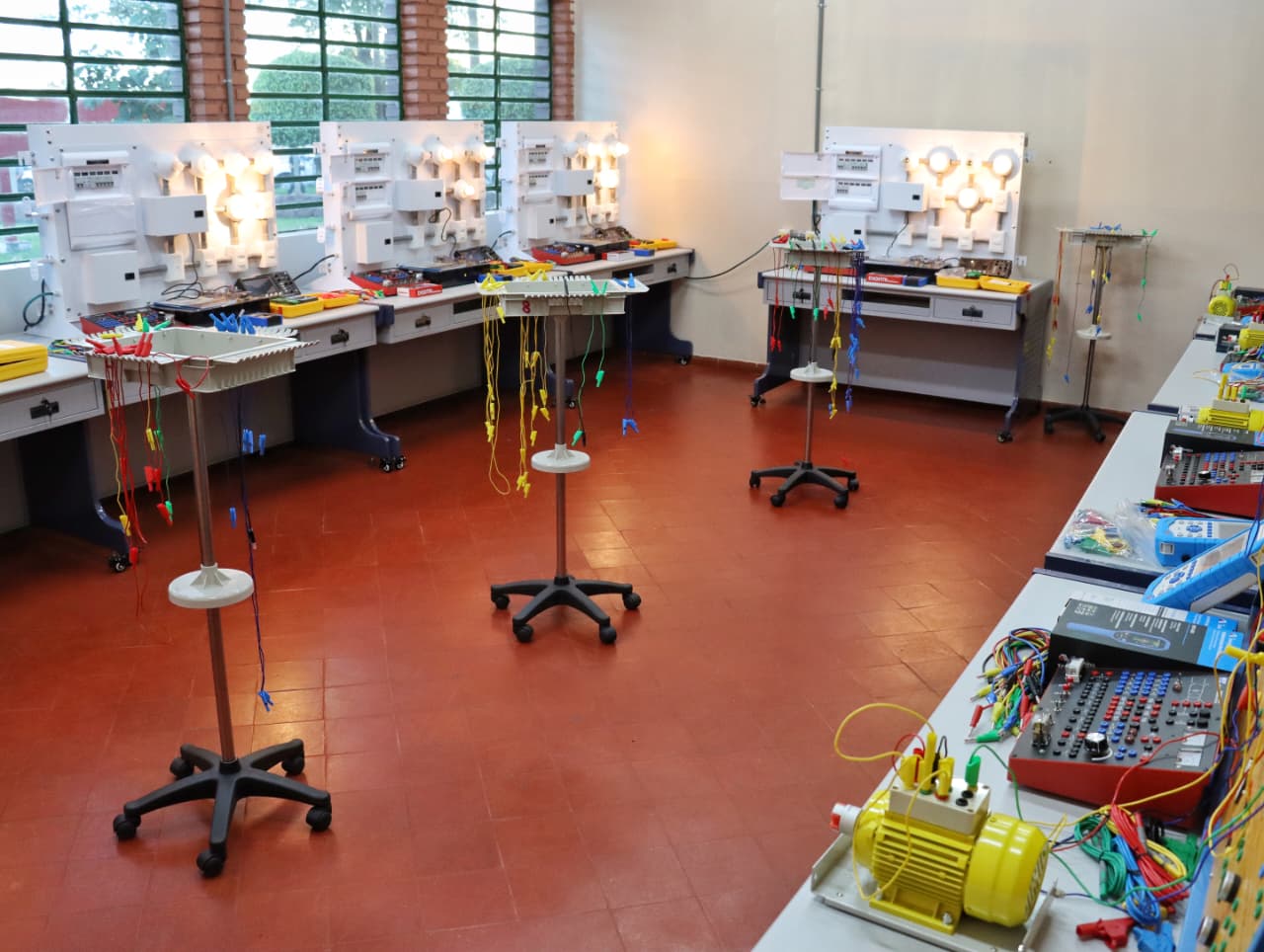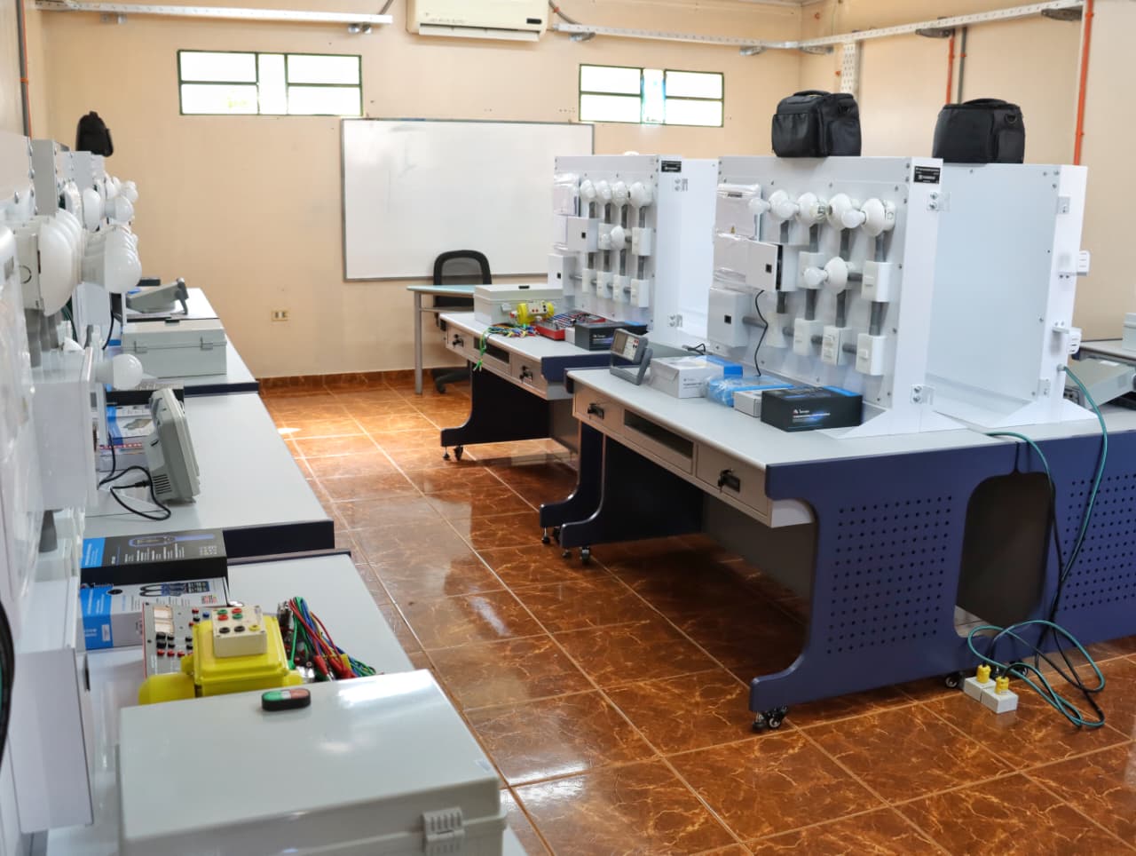 Asimismo, se incorporaron brazos robóticos para el fortalecimiento de la robótica industrial, además de sistemas de neumática, controladores lógicos programables (PLCs) y diversos equipos especializados para el área de mantenimiento industrial, como megómetros y terrómetros, entre otros.